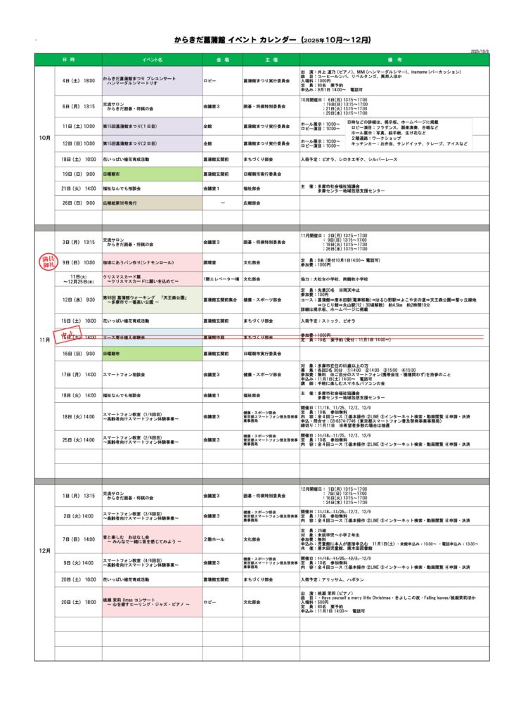 〈NEW〉イベントカレンダー(2025年10月~2025年12月)
