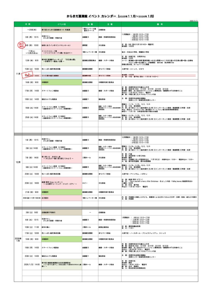 <NEW>イベントカレンダー(2025年11月~2026年1月)