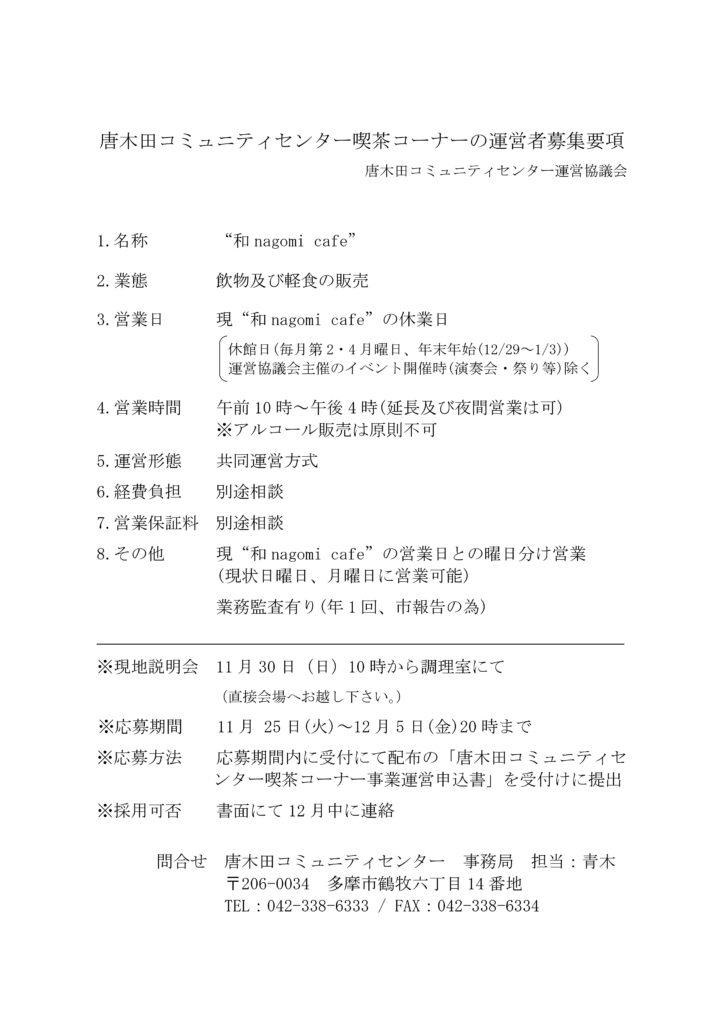 2025.11.25 喫茶コーナーの運営者募集のお知らせ