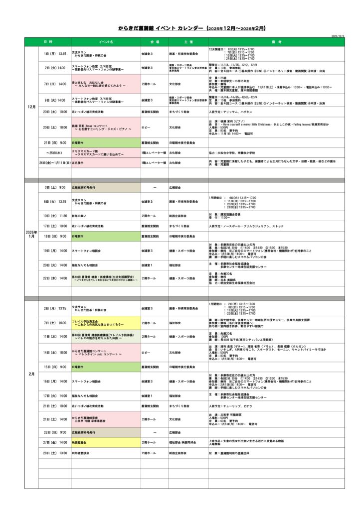<NEW>イベントカレンダー(2025年12月~2026年2月)