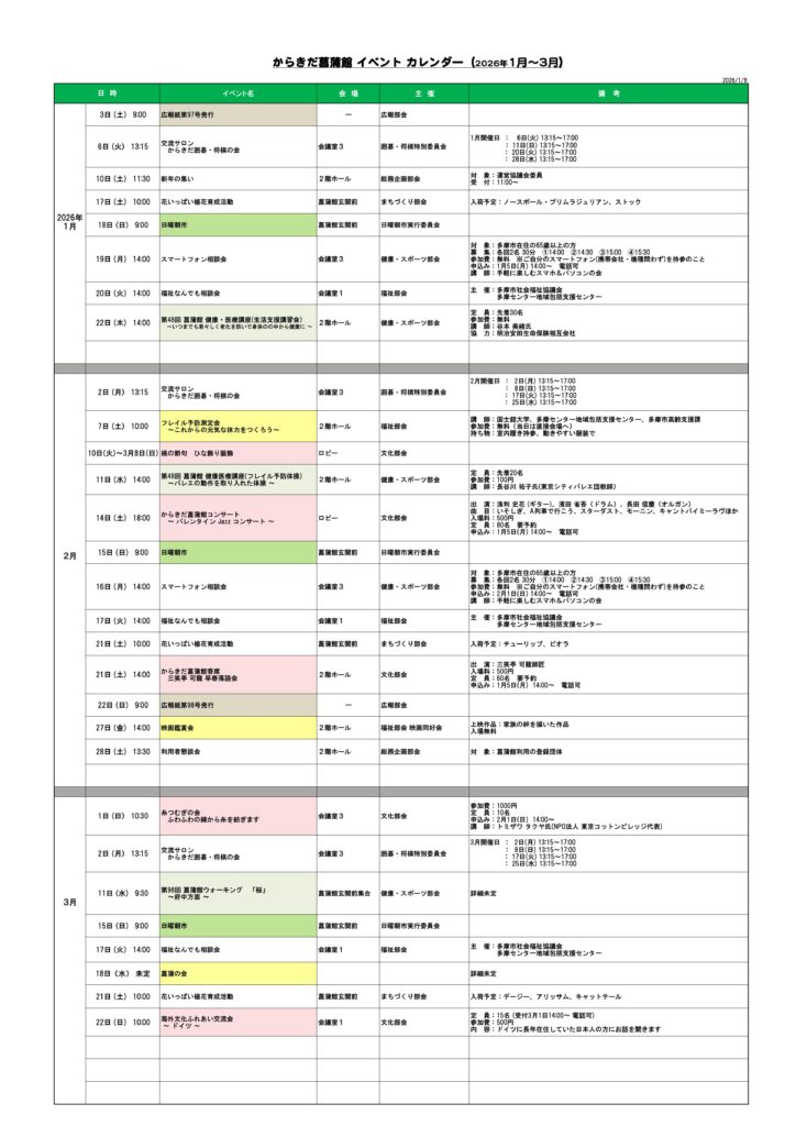 <NEW>イベントカレンダー(2026年1月~2026年3月)