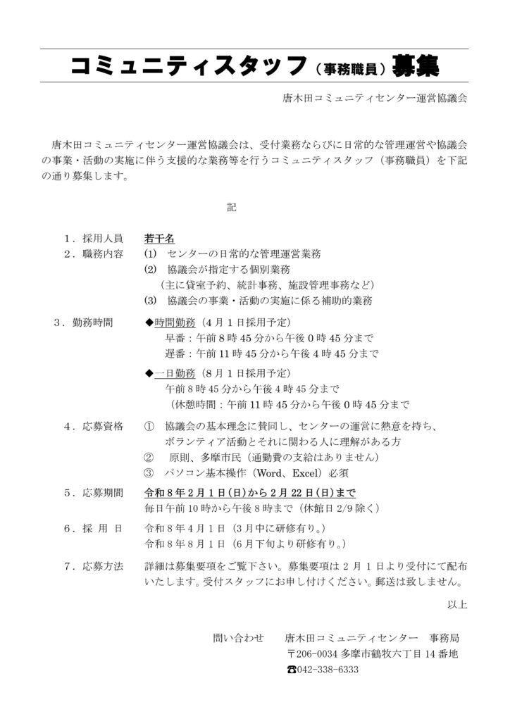 2026.2.1 コミュニティスタッフ募集のお知らせ