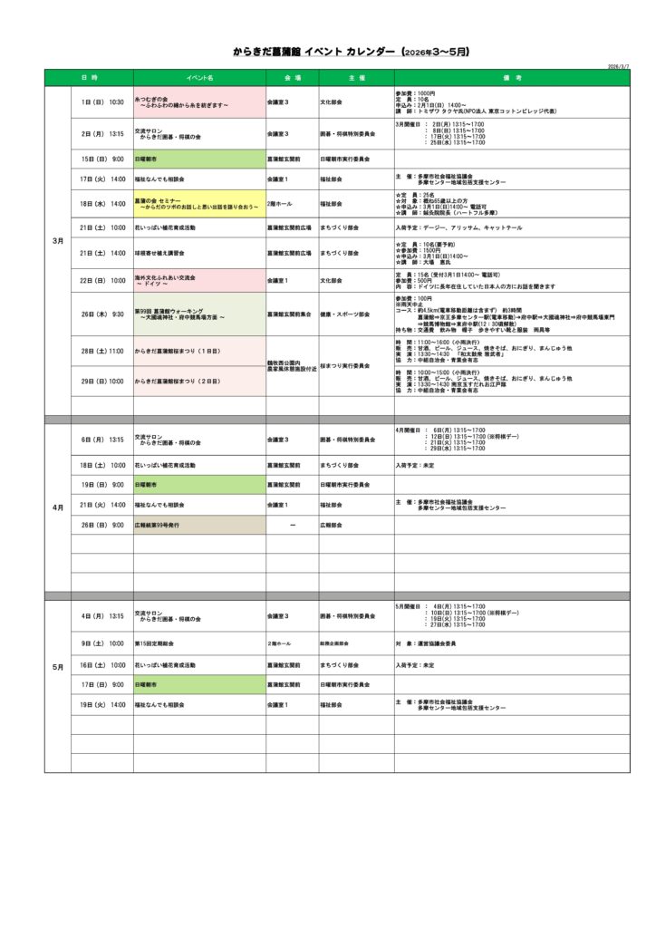 <NEW>イベントカレンダー(2026年3月~2026年5月)